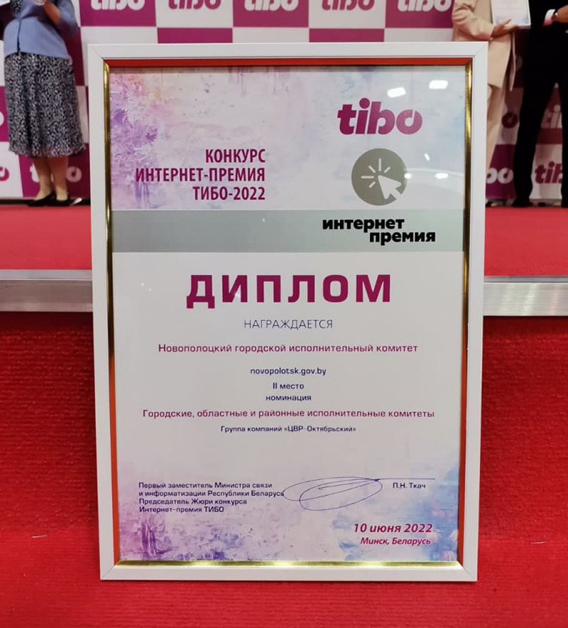 Интернет-портал города Новополоцка занял почетное 2-е место в конкурсе «Интернет-премия» на Международном форуме и выставке Tibo-2022