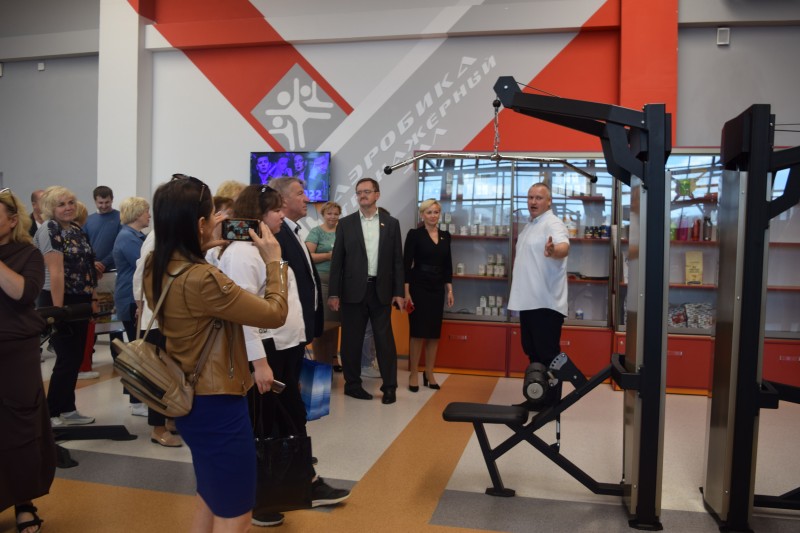 Председатель Ушачского районного Совета Наталья Маркович и директор местной СДЮШОР Сергей Кислый познакомили с инфраструктурой новейшего спортивного учреждения региона – ФОК «Юность». Впечатляющее сооружение с бассейном и тренажерным залом появилось в Ушачах благодаря председателю Палаты представителей Владимиру Андрейченко. Сегодня оно пользуется популярностью не только у местных жителей, но и у спортсменов из всех уголков нашей страны и даже России.