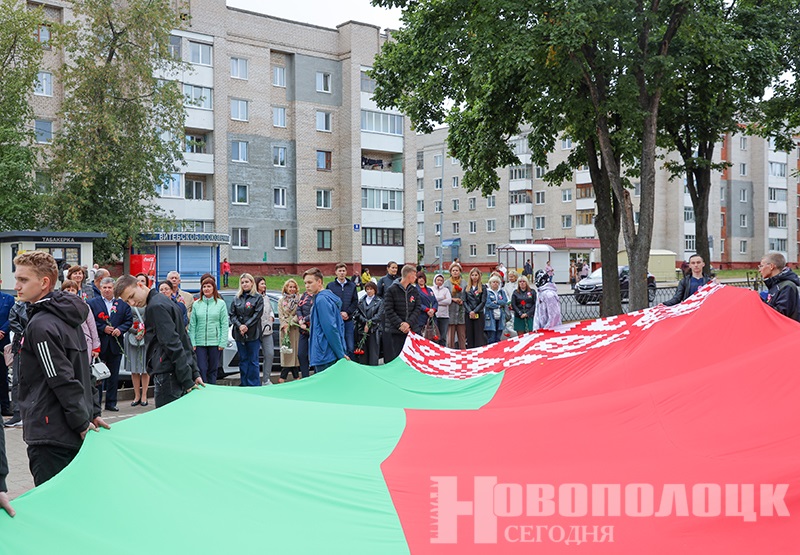 Город и горожане В Новополоцке прошел областной патриотический марафон «Единый». Фоторепортаж 05.09.2022 354 Администратор День народного единства, новости Новополоцка, патриотический марафон «Единый», Флаг, фоторепортаж Государственный флаг Республики Беларусь передали по реке Западная Двина. Спортсмены провезли его вдоль улицы Молодёжная к мемориальной памятнику «Первая палатка», где состоялся митинг. Фоторепортаж Елены Емельяновой.