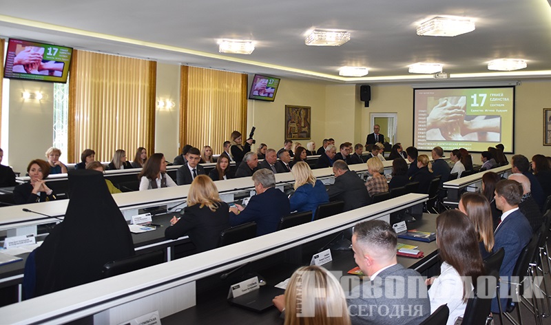 В преддверии Дня народного единства в Полоцком государственном университете имени Евфросинии Полоцкой прошел общественно-политический марафон «17 граней единства», где собрались сотрудники и преподаватели вуза, активы общественных объединений, студенты, а также представители предприятий.