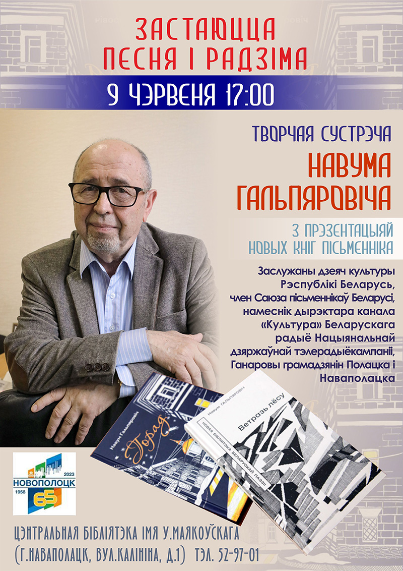 На встрече будет представлены новые сборники стихов Н.Я.Гальперовича «Горад» и «Ветразь лёсу», в которых собраны лучшие стихи, созданные им за полвека творческой деятельности.