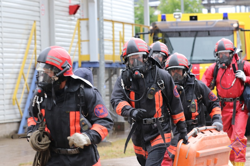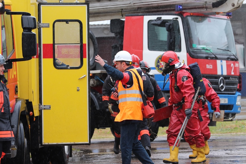 К месту условного ЧС были направлены 8 автоцистерн, автомобиль химической радиационной защиты, автоколенчатый подъемник, пожарная насосная станция и более 50 человек личного состава подразделений МЧС.