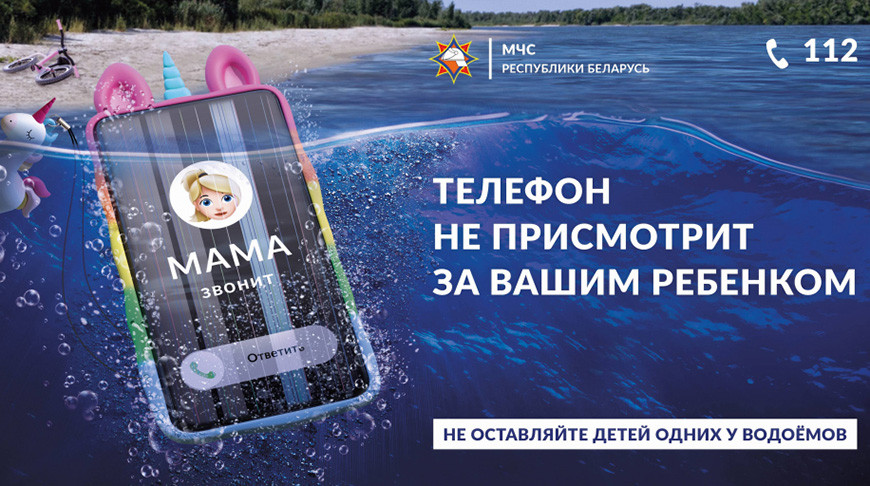 Информационная кампания «Будь рядом с ребенком», направленная на предупреждение гибели детей при пожарах и на водоемах, стартует по всей Беларуси в августе. На печатной продукции изображение телефона в эпицентре трагедии будет важным посылом, который кроется в слогане кампании: «Телефон не присмотрит за вашим ребенком!». Этот образ привлечет внимание целевой аудитории к поднятой проблеме.