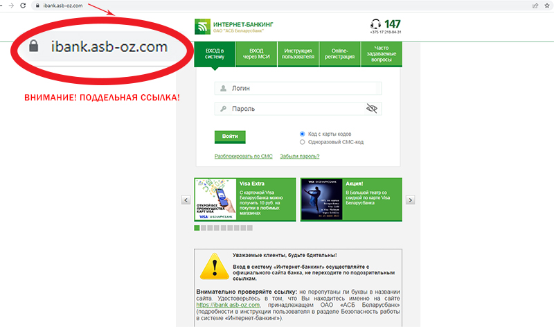 Вниманию клиентов БЕЛАРУСБАНКА. В сети существует поддельная страница интернет-банкинга Беларусбанка. Не вводите свои данные