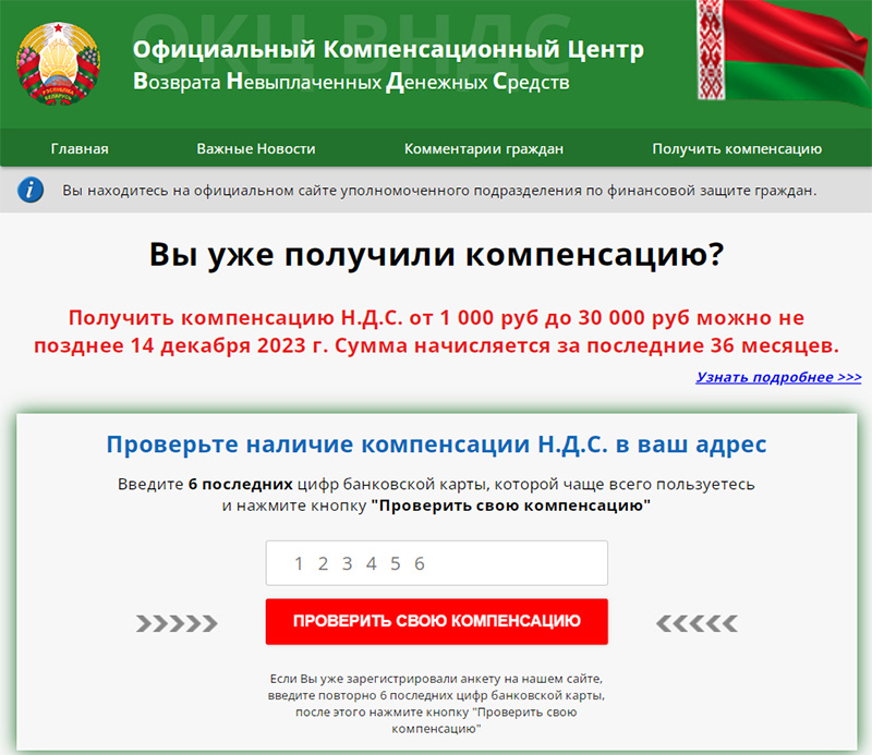 В Instagram распространяется реклама Интернет-ресурса, который от имени выдуманного госоргана Республики Беларусь предлагает гражданам получить выплату. (http://rb-viplat.top, не вводите реквизиты карт!)