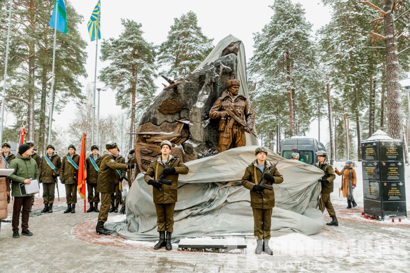 В Новополоцком микрорайоне Боровуха состоялось торжественное открытие памятного знака в честь героически погибших десантников 350-го гвардейского парашютно-десантного полка 103-й гвардейской воздушно десантной дивизии и экипажа самолета Ил-76 128-го гвардейского военно-транспортного авиационного полка.