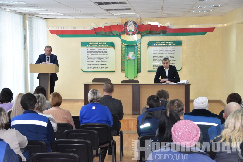 Заместитель председателя Новополоцкого горисполкома Сергей Шамрило и начальник отдела ЖКХ Леонид Кулаженко провели информационную встречу с трудящимися филиала «Новополоцкжелезобетон».