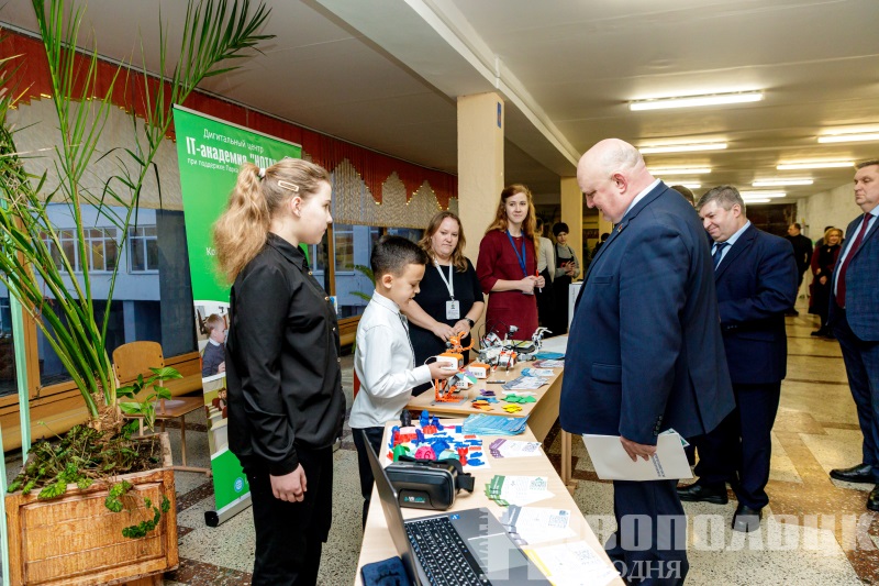 Перед тем, как пройти в актовый зал, гостям предлагалось ознакомиться с тематическими площадками у входа: мастерской «Отцы и дети» гимназии №1, объединениями по интересам Дворца детей и молодежи. Многообразие технических разработок, созданных юными новополочанами, представил дигитальный центр «IT-академия «НОТА». А физкультурно-спортивный центр детей и молодежи наглядно продемонстрировал, как можно проводить совместный досуг по выходным в «Папазале».