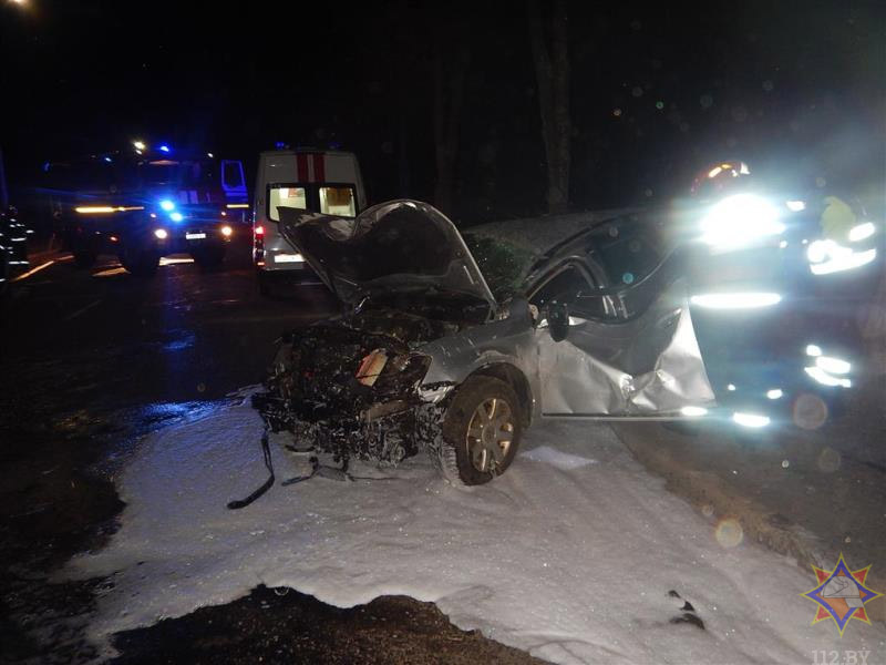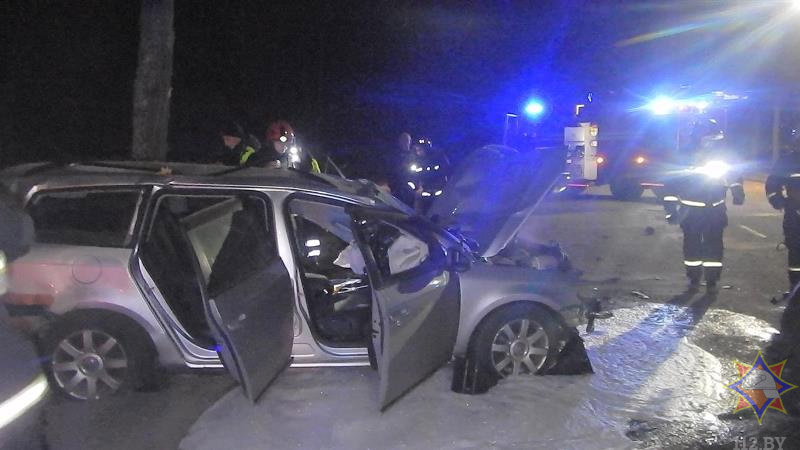В Новополоцке автомобиль столкнулся с деревом: спасатели деблокировали водителя