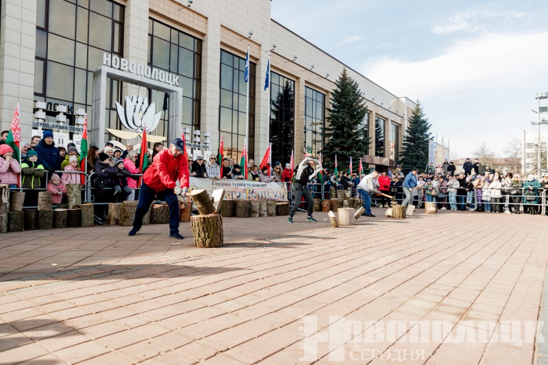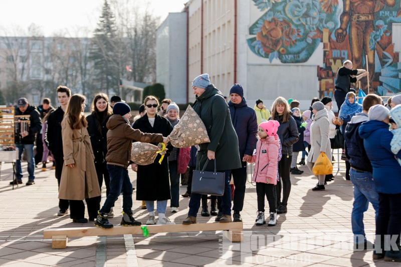 Угощения, народные забавы и турнир по колке дров. Как в Новополоцке отпраздновали Масленицу? Фоторепортаж