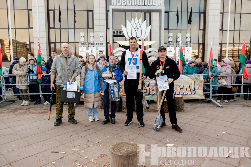 Соревнование было организовано в три этапа. В первом приняли участие 24 человека: 6 подходов по 4 участника. После каждого выхода двое покидали состязания. Каждый получил памятную медаль из дерева. На соревнованиях царил настоящий накал страстей! Горожане активно поддерживали своих коллег и близких, пытаясь занять место в первом ряду. В финале встретились сильнейшие – Александр Бабич, Сергей Урбанович, Дмитрий Лукашок. Наряду с мужчинами показала свои навыки единственная среди участников девушка – Светлана Пивоварова.