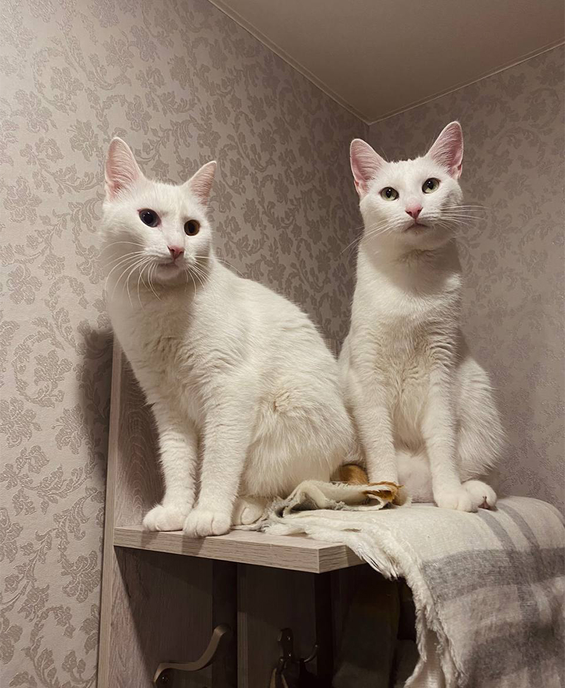 То, что у кота есть нарушения слуха, молодую пару не испугало – у них уже был определенный опыт. Кошка Элис, которую они взяли в семью первой, тоже оказалась глухой. Заметили это уже спустя время – на стандартное «кис-кис» питомица не откликалась, на окружающие звуки никак не реагировала. Хозяева сразу стали штудировать интернет. Почитали, что эта особенность присуща четвероногим обладателям белой шубки. Такой генетической патологией страдает большой процент питомцев снежного окраса, что в основном связано с доминантным геном «W», передающимся от поколения к поколению.