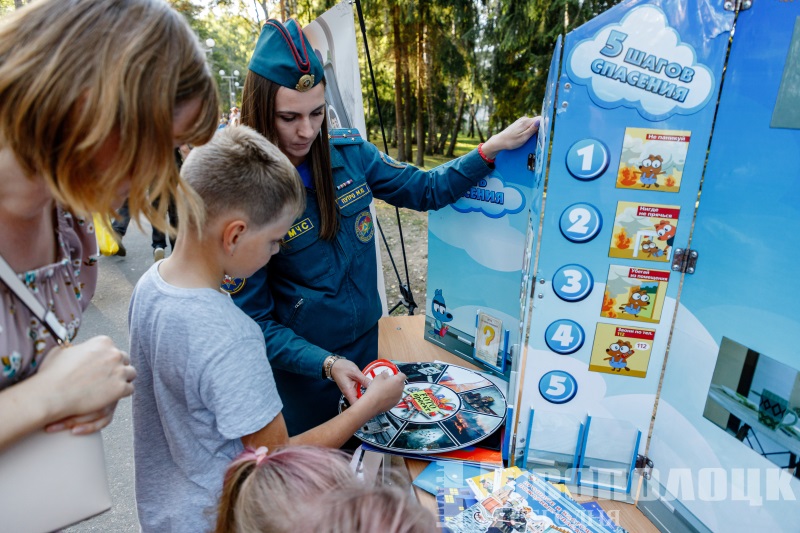 В праздничный день вдоль парковой дорожки развернулось множество развлекательных, спортивных и познавательных площадок, которые представили учреждения образования, ГОВД, ГОЧС, ФК «Нафтан», ТЦСОН, Центр ремесел и традиционной культуры, городские организации общественных объединений.