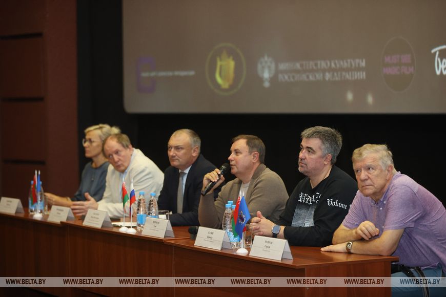 Кинопоказу для журналистов предшествовала небольшая пресс-конференция, на которой, помимо вышеупомянутых создателей фильма, присутствовали актер Виктор Вержбицкий, художник-постановщик Наталья Навоенко, звукорежиссер Сергей Чупров, а также заместитель генерального директора «Беларусьфильма» Павел Скалабан, взявший на себя роль модератора.