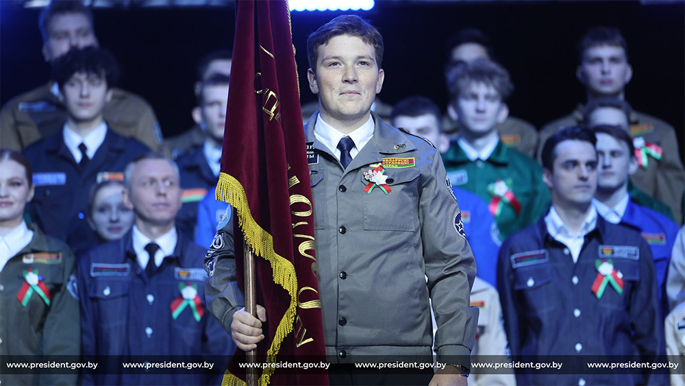 Глава государства вспомнил вехи становления студотрядовского движения, а также знаковые объекты, возведенные при помощи молодых людей. Президент в торжественной обстановке вручил переходящее знамя лучшему студотряду 2024 года – строительному отряду «Зодчие» имени П. И. Блохина. Он сформирован на базе Полоцкого государственного университета имени Евфросинии Полоцкой в составе 10 человек, которые трудились на строительстве Республиканского центра патриотического воспитания молодежи на базе Кобринского укрепления Брестской крепости. Этому объекту был присвоен статус Всебелорусской молодежной стройки.