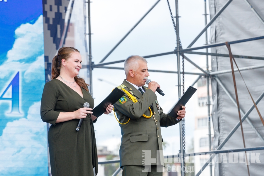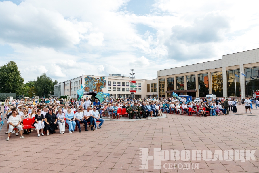 На большой сцене города сегодня выступают артисты и легендарные коллективы из Беларуси и России. На Международный праздник-фестиваль военно-патриотической и армейской песни «Синева» приехали 20 коллективов и 76 артистов из Курска, Кстово, Наро-Фоминска, Витебска, Ушач, Полоцка и, конечно, Новополоцка.