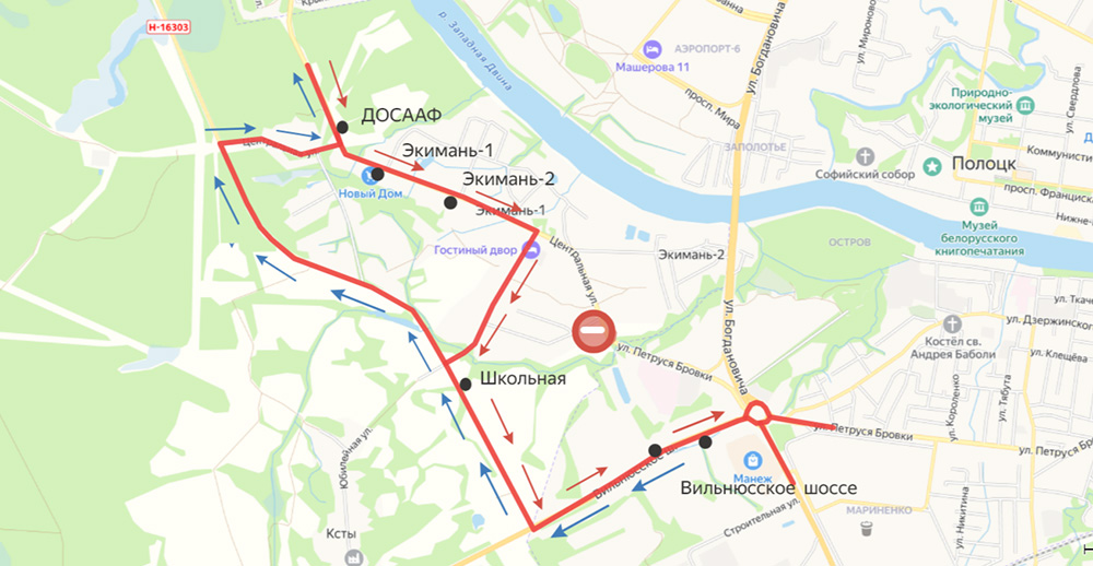В минувший вторник состоялся штаб по обсуждению схемы объезда проблемного участка дороги. Так, начиная со следующей недели, при движении из Новополоцка в Полоцк пассажирский транспорт будет следовать через деревню Экимань, останавливаясь на существующих остановочных пунктах. Далее его маршрут продолжится по улице Школьной до выезда на «хлебозаводскую» трассу.
