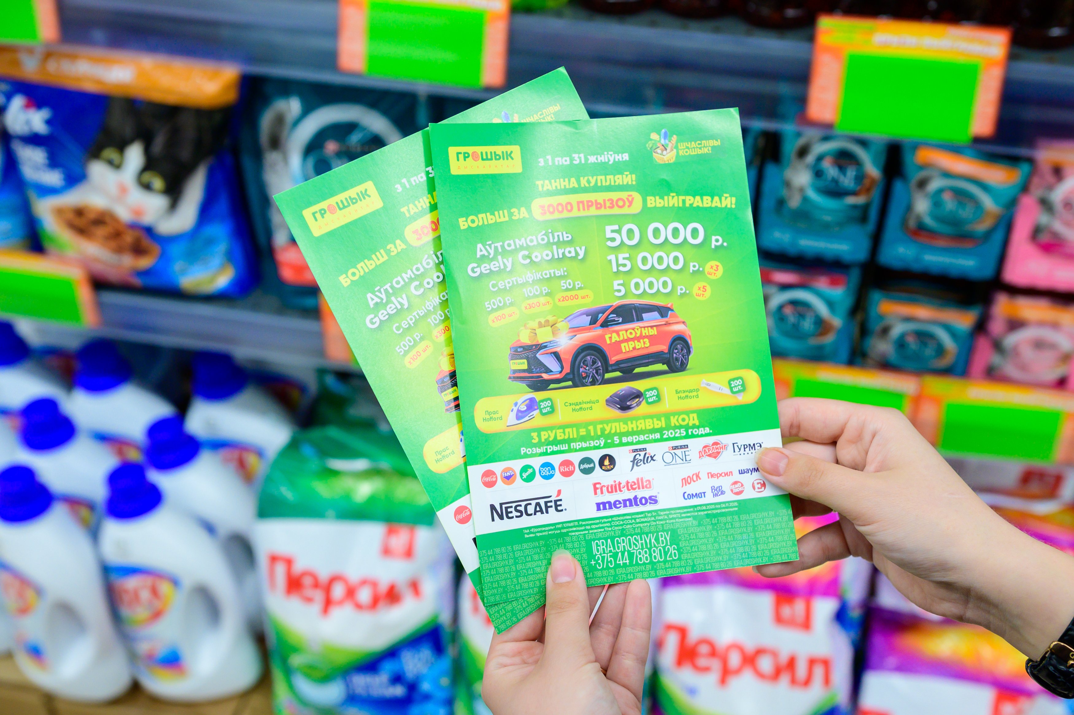 Срок рекламной игры «Шчаслiвы кошык! Тур 5» с 01.08.2025 по 06.11.2025 Подробности – на сайте igra.groshyk.by или по телефону +375 44 788 80 26.