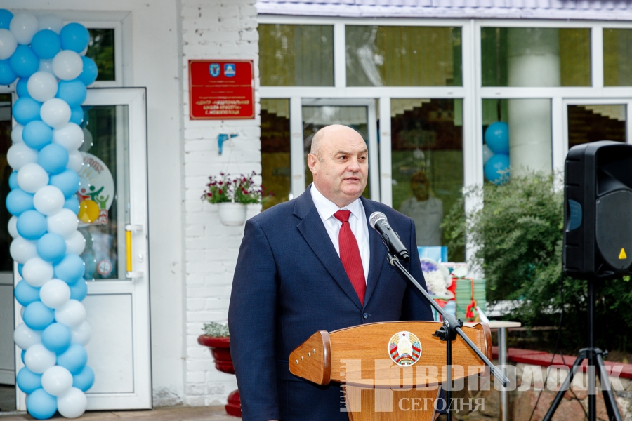 Для СШ № 4 нынешняя торжественная линейка стала особенной. В празднике принял участие председатель Новополоцкого горисполкома Игорь Бурмистров.
