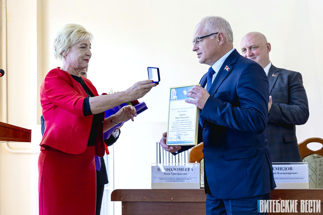 – Необходимо поддерживать высокий уровень мероприятий, которые реализуются в нашей области, – нацелил нового профсоюзного лидера председатель Витебского областного Совета депутатов Дмитрий Демидов. – В частности, это работа с нанимателями в плане создания комфортных, надлежащих условий труда, социальная, материальная поддержка людей, которые в ней нуждаются. Активное внедрение различных форм наставничества, чтобы молодежь, которая приходит в трудовые коллективы, не была предоставлена сама себе. Уверен, что динамичное развитие профсоюзного движения и кадровые назначения, которые у нас осуществляются, будут только способствовать повышению качества работы профсоюза.