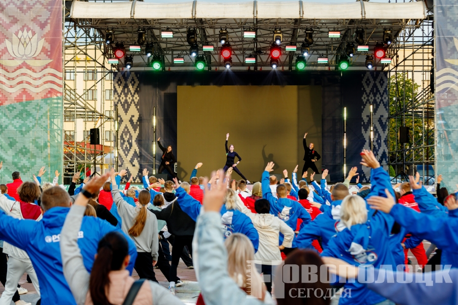 Общегородская зарядка объединила новополочан в День народного единства. Улыбки, море бодрости, энергии и отличного настроения – вот лучший рецепт старта праздника.