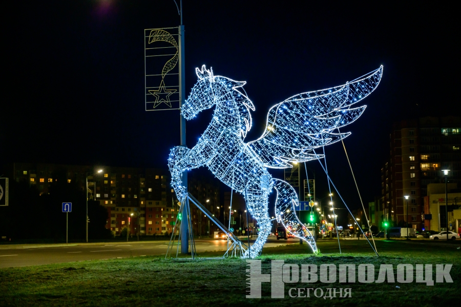 Оригинальные световые конструкции устанавливают в Новополоцке. Корреспонденты запечатлели три новые работы, которые добавили городу современности и сказочного настроения.