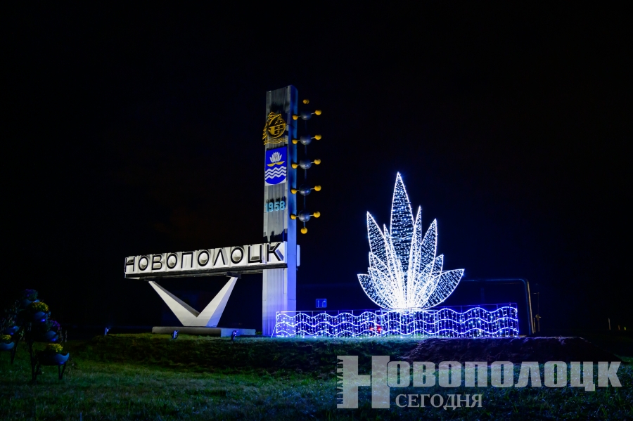Фирменный символ города – светящаяся лилия – теперь встречает всех на въезде в Новополоцк. Эту элегантную конструкцию смонтировали специалисты филиала «Новополоцкводоканал».
