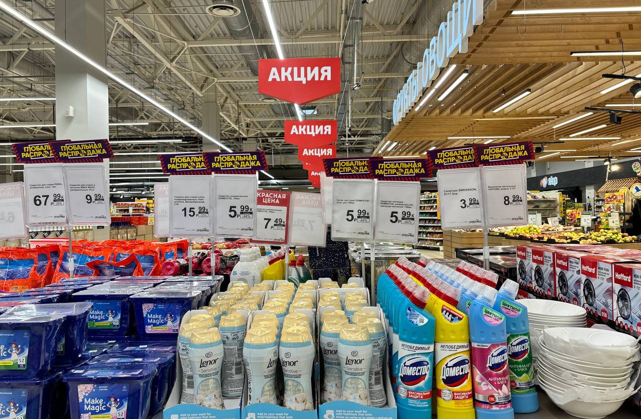 Жёлтые ценники с отметкой «РАСПРОДАЖА» и фиолетовые надценники помогут быстро сориентироваться и найти самые горячие предложения.