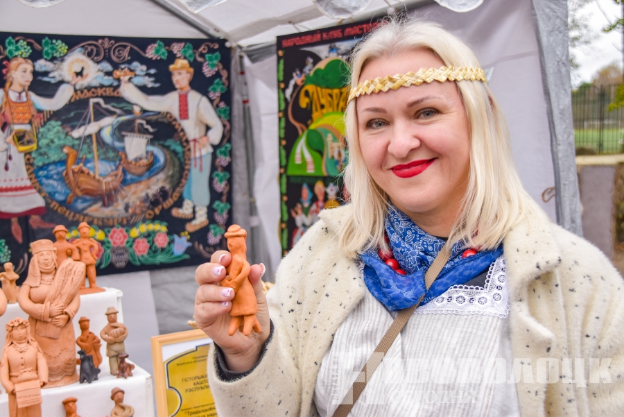 Ольга Алексеева, народный мастер Беларуси, рассказала, что привезла в Новополоцк образцы керамики черного дымления и свистульки ручной лепки: «В прошлом году на «Славянском базаре» наша студия получила Гран-при в конкурсе мастеров «Гліна спявае». Стараемся активно передавать народные традиции талантливой молодежи».