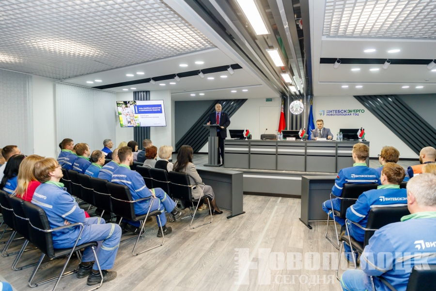 Информационная группа во главе с председателем Новополоцкого горисполкома Игорем Бурмистровым пообщалась с работниками филиала «Новополоцкая ТЭЦ» РУП «Витебскэнерго» в рамках единого дня информирования по теме «Роль семейных ценностей в современном обществе».