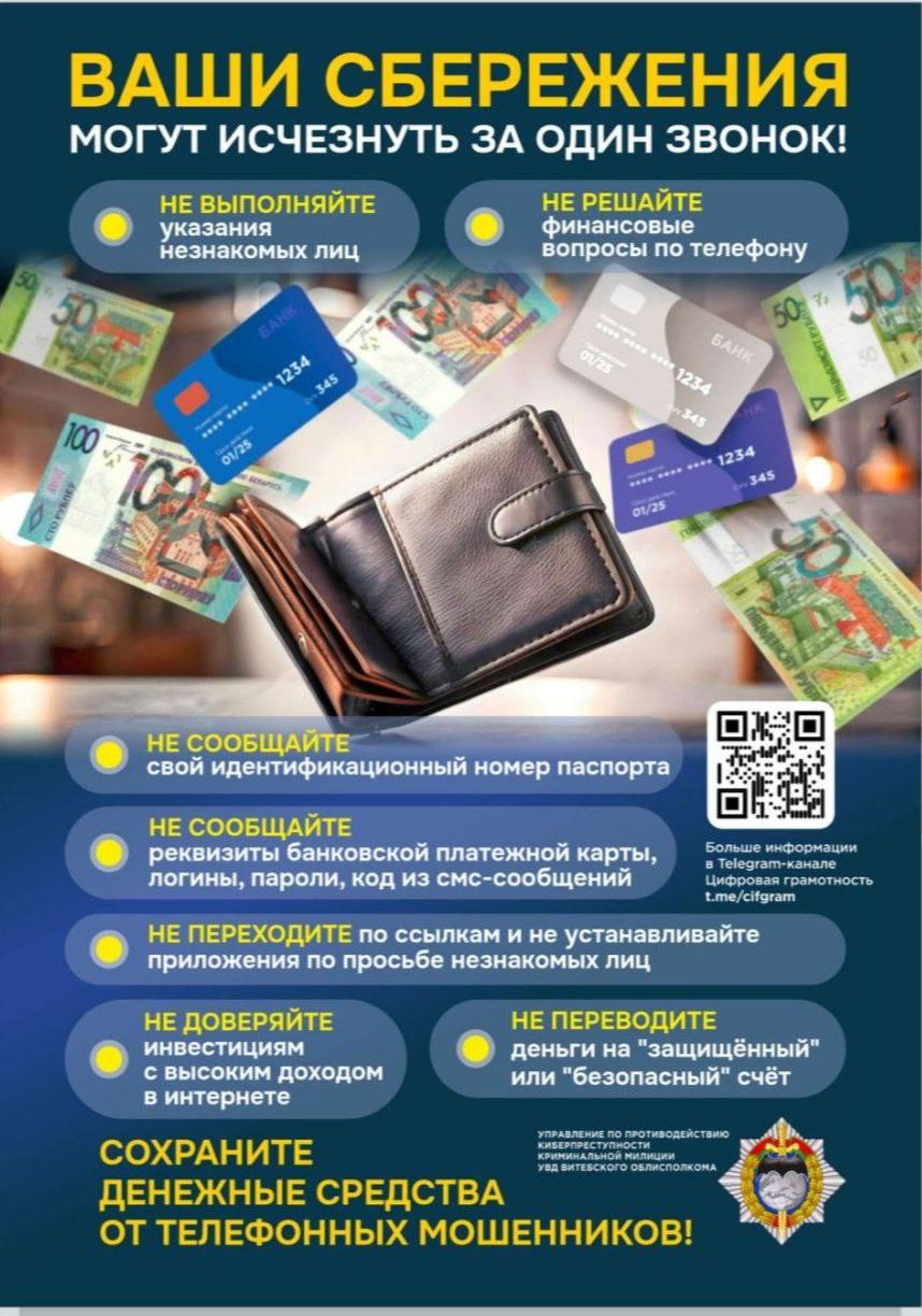 Милиция напоминает гражданам об участившихся случаях мошеннических действий, в ходе которых изначально преступники представляются различными службами, с целью получения персональных данных, кодов доступа, реквизитов банковских платежных карт, а в последующем звонят от имени сотрудников милиции, комитета государственной безопасности, департамента финансовых расследований, и следственного комитета с целью хищения денежных средств граждан.