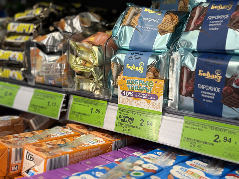 Благотворительный проект «Добрые товары». В магазинах торговой сети «Евроопт» товары с жёлтыми надценниками — не просто товары. 10% от их продажи перечисляются в РНПЦ «Мать и дитя» в поддержку лечения детей с СМА.