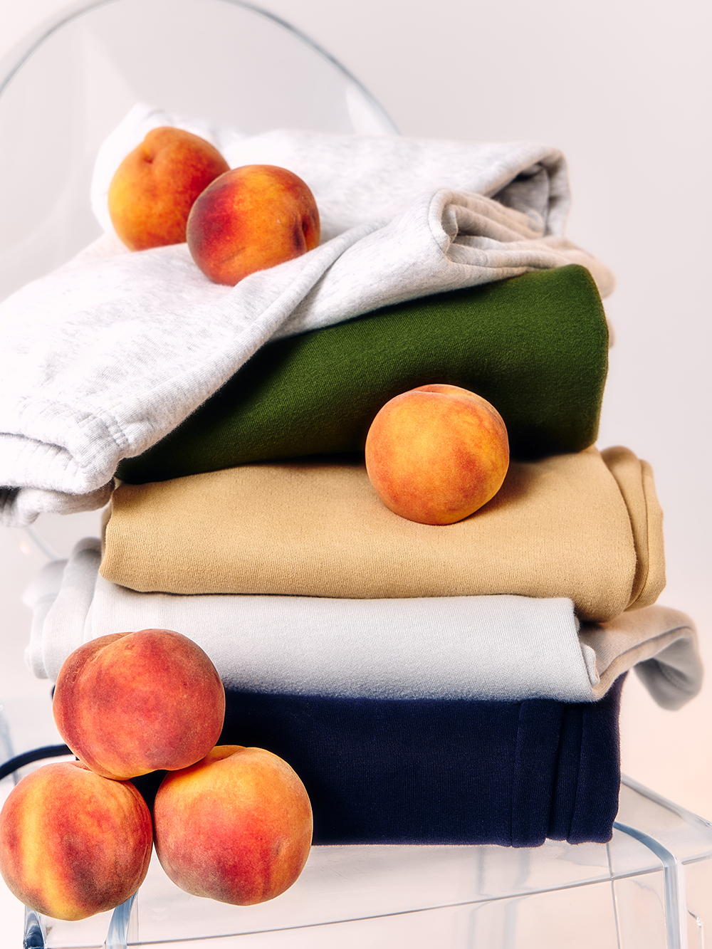 Главная особенность Gentle Touch в том, что все модели выполнены из футера с пич-эффектом по лицевой стороне. Эта уникальная обработка ткани, благодаря которой материал приобретает мягкую и бархатистую фактуру, словно персик. Именно она во время носки вызывает ощущение «нежности прикосновения», заложенное в названии. Модели из линейки представляет собой гармоничное сочетание комфорта, универсальности и современного базового стиля.