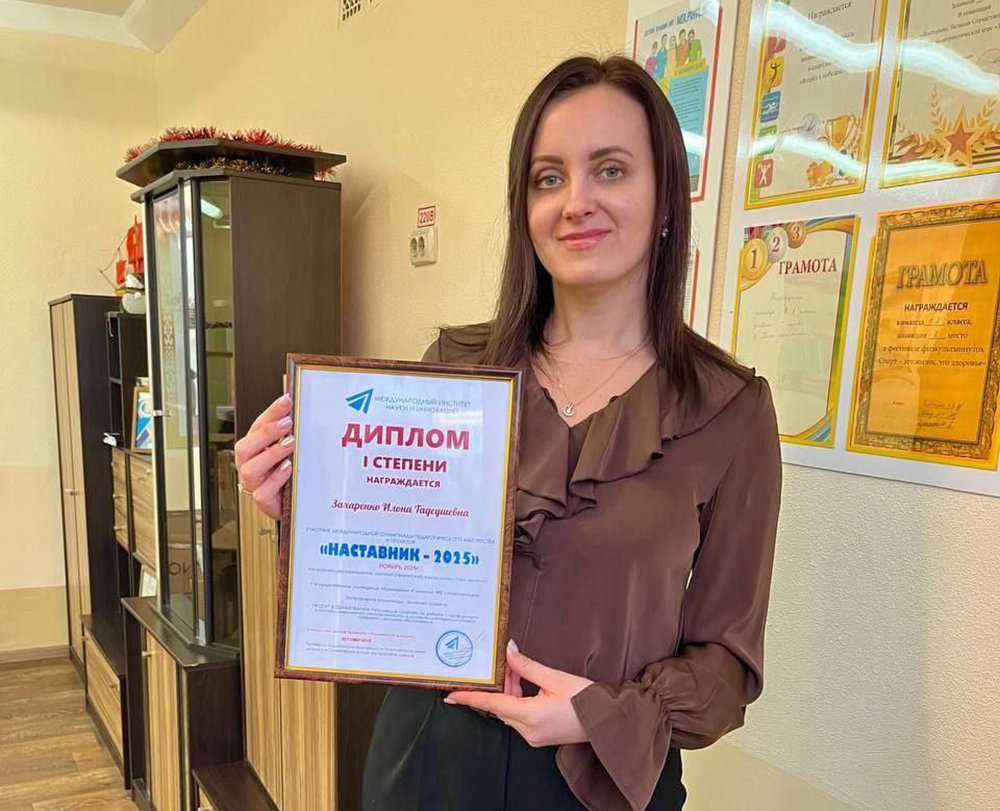 На олимпиаде педагогического мастерства и проектов «Наставник-2025» учитель русского языка и литературы представила авторскую работу «Реализация проекта по работе с профильными классами инженерной направленности в условиях общего среднего и высшего образования» и была удостоена диплома I степени в номинации «Проект в образовании».