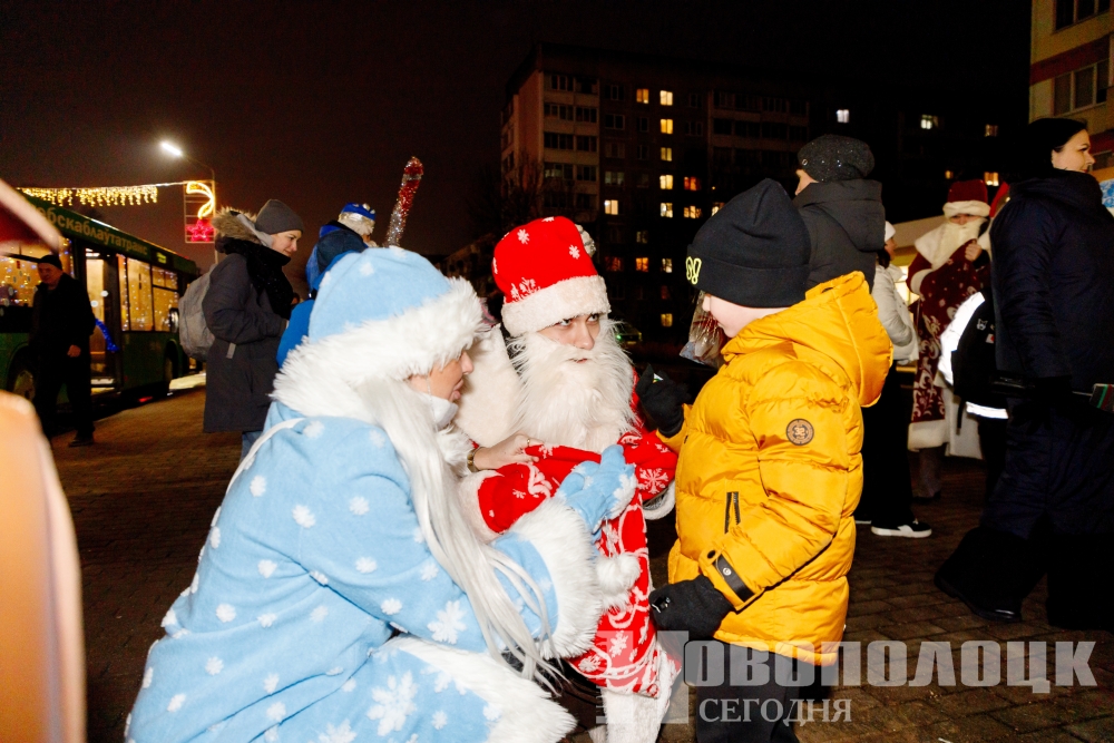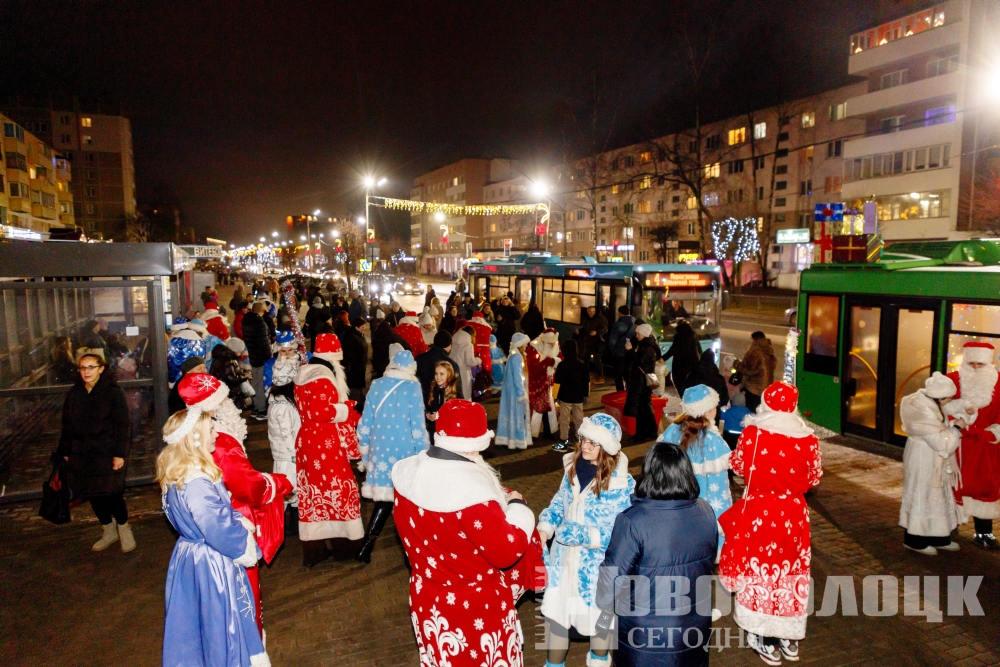 Кортеж из наряженных в праздничную атрибутику транспортных средств, в которых водителями и пассажирами были волшебные герои Нового года, проехал по улице Молодежной и своим зрелищным появлением, как всегда, вызвал неописуемый восторг у жителей и гостей Новополоцка. На остановочных пунктах сказочных персонажей радостно встречали девчонки и мальчишки.