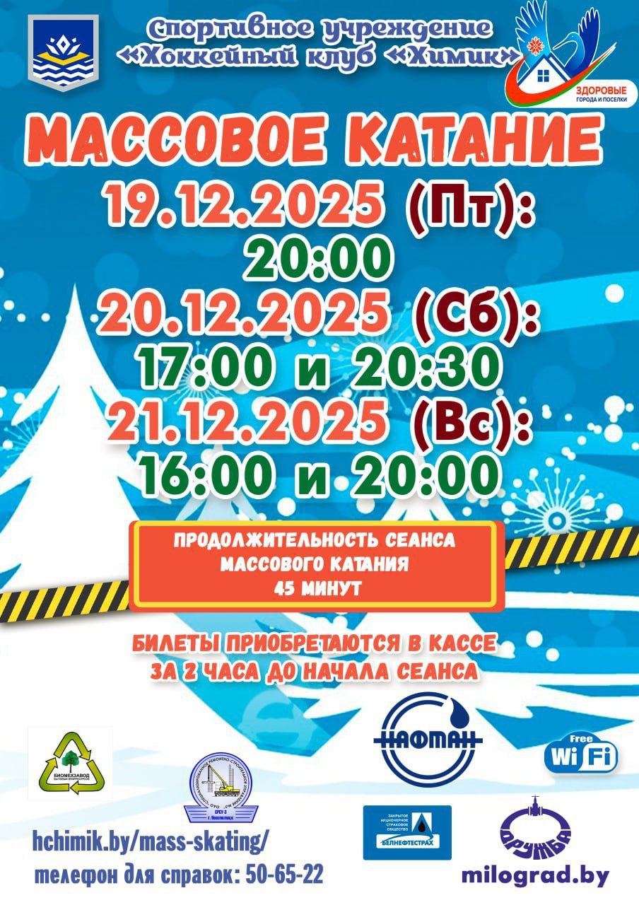 Спортивное учреждение «Хоккейный клуб «Химик» приглашает новополочан на массовое катание