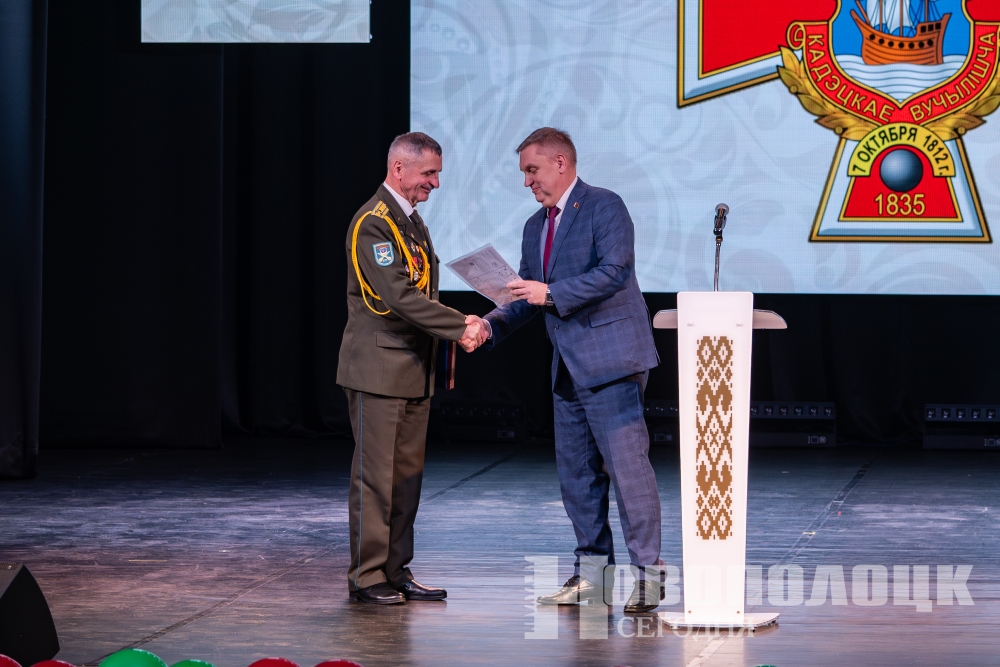 В нем говорилось, что современное кадетское училище – это колыбель традиций, кузница характеров и школа защитников Отечества. Приятным дополнением к словам Игоря Павловича стал подарок, который со сцены Центра культуры юбилярам презентовал заместитель председателя горисполкома Андрей Одиночкин.