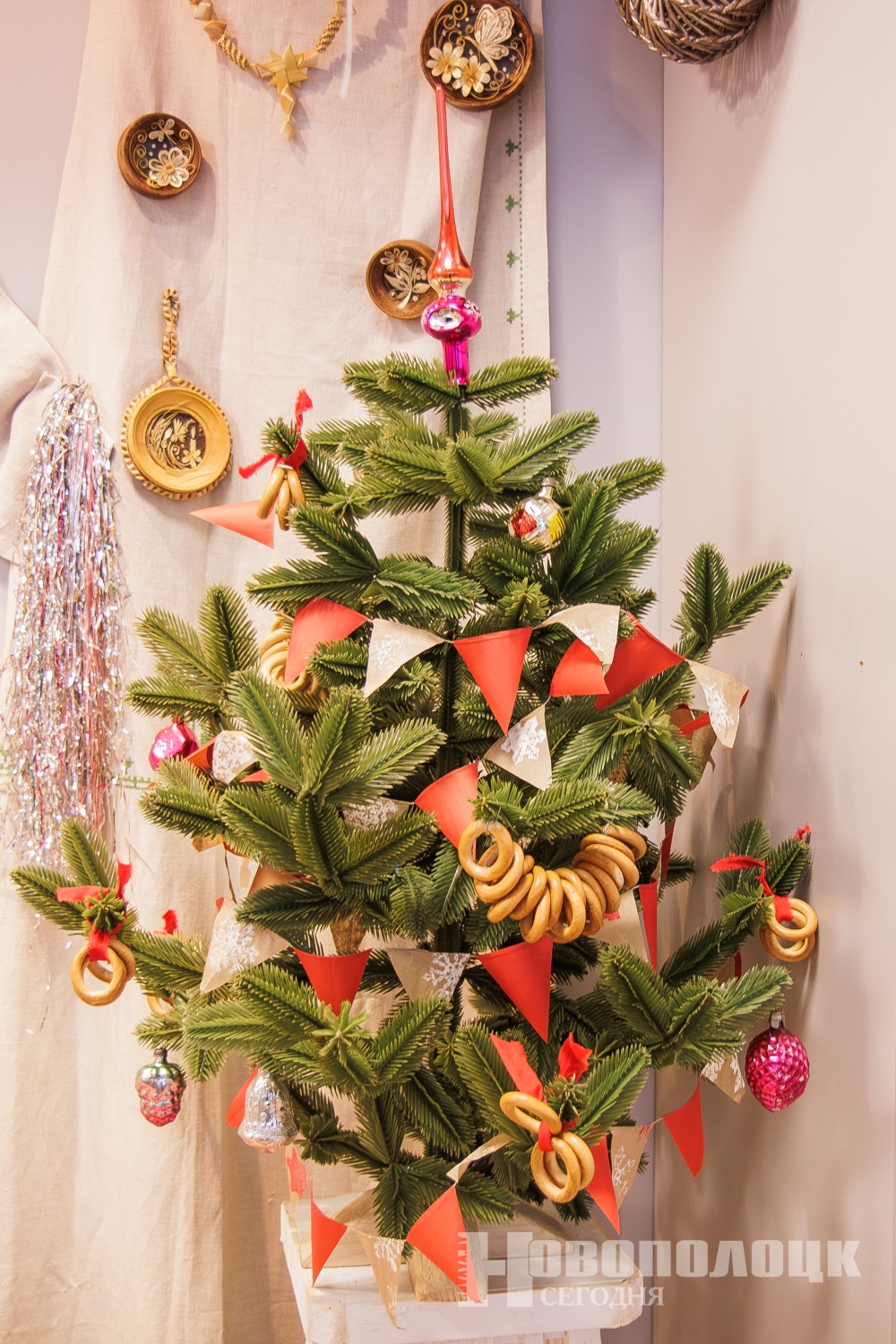 Креативные инсталляции ручной работы, живые ели, экспозиция с раритетными советскими украшениями, которая словно рассказывает о праздниках минувших лет.