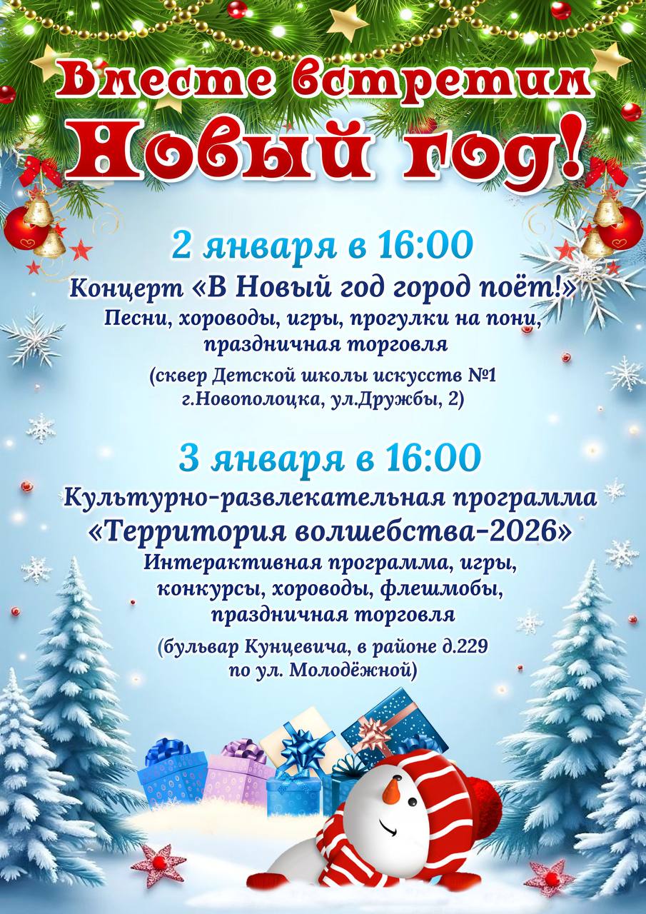 3 января – культурно-развлекательная программа «Территория волшебства – 2026» в районе дома 229 по улице Молодежной (бульвар Кунцевича).