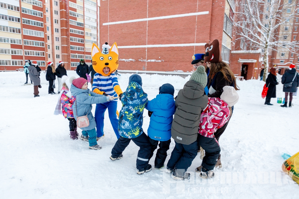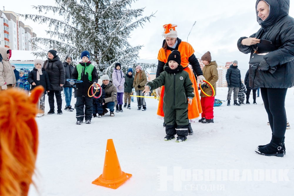 В первых числах нового года в 9 микрорайоне развернулась веселая культурно-развлекательная программа, подготовленная отделом по образованию горисполкома. Так, например, Центр по военно-патриотическому воспитанию зазывал гостей праздника сразиться в хоккейном матче, детский сад № 35 – в метании колец, а ДС № 33 – оседлать символ года в игре «Хоббихорсинг».