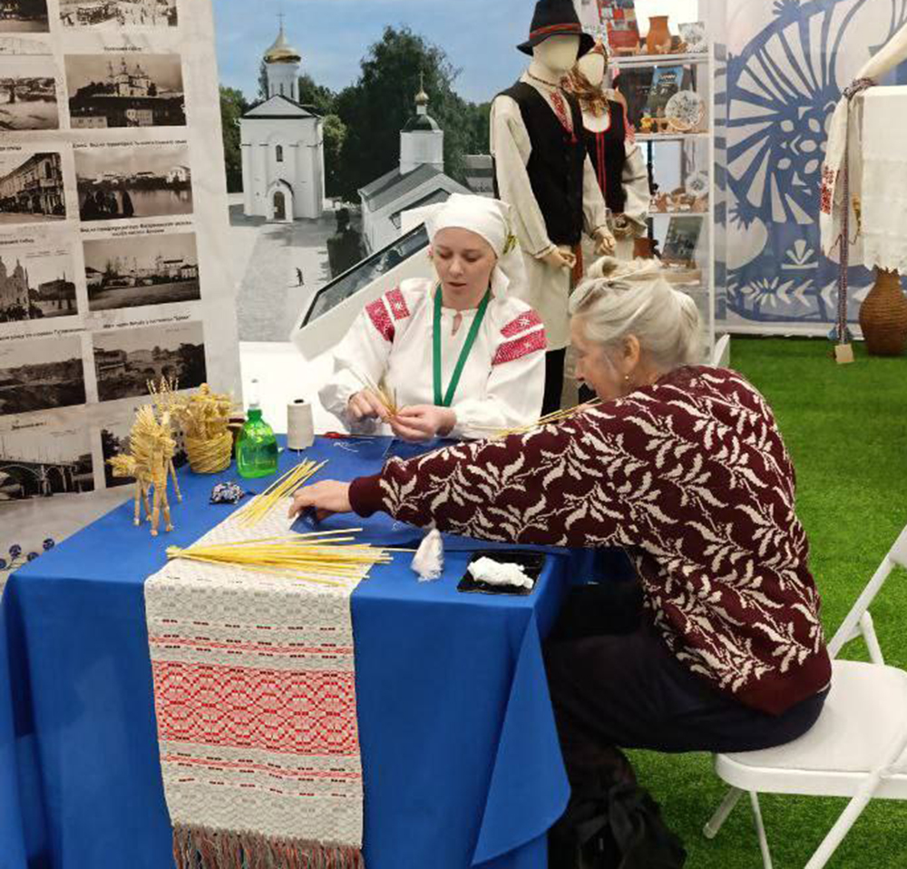 Красоту народного декоративно-прикладного искусства в международном выставочном центре BELEXPO продемонстрировали мастера ЦРиТК Екатерина Усович и Юлия Шайтор. Керамист Екатерина Юрьевна представила мастер-класс по росписи глиняных колокольчиков акриловыми красками, а мастер по соломке Юлия Геннадьевна – по изготовлению ангела.