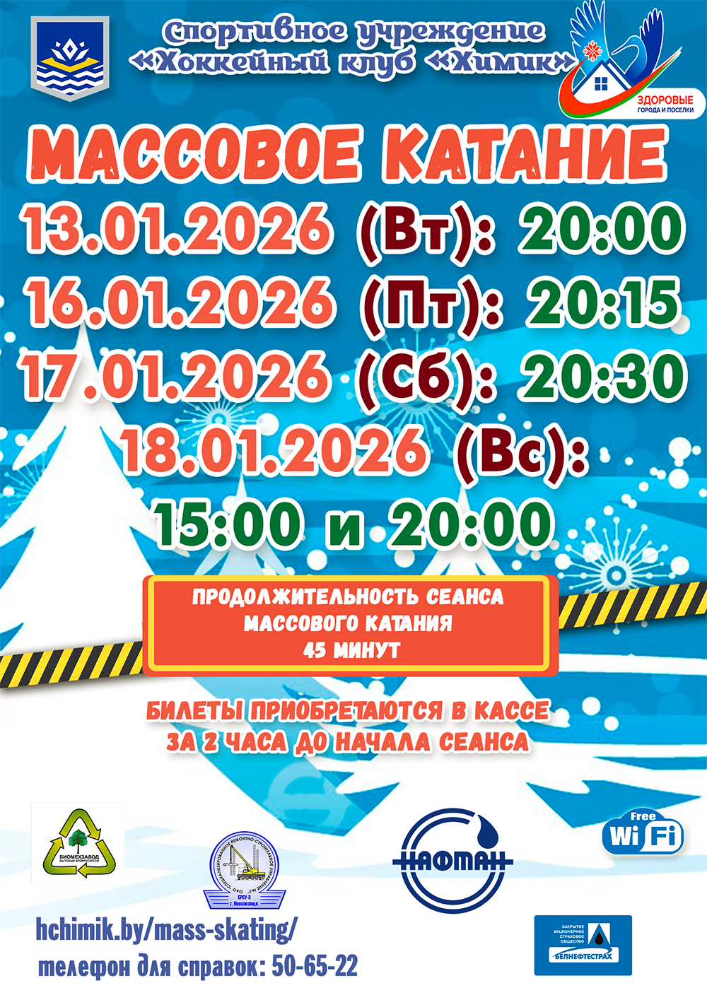 Спортивное учреждение «Хоккейный клуб «Химик» приглашает новополочан на массовое катание