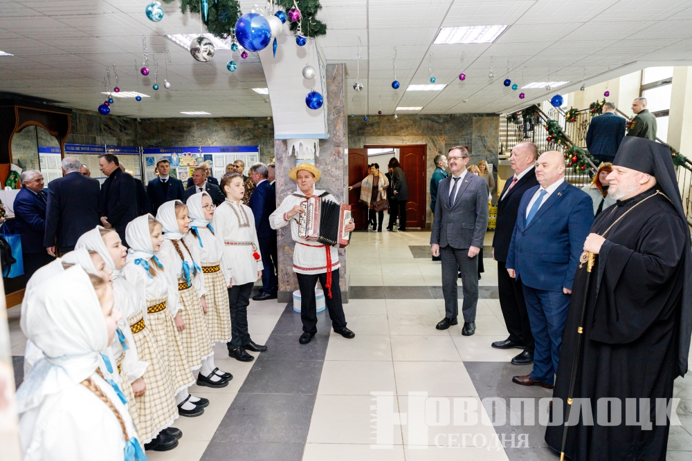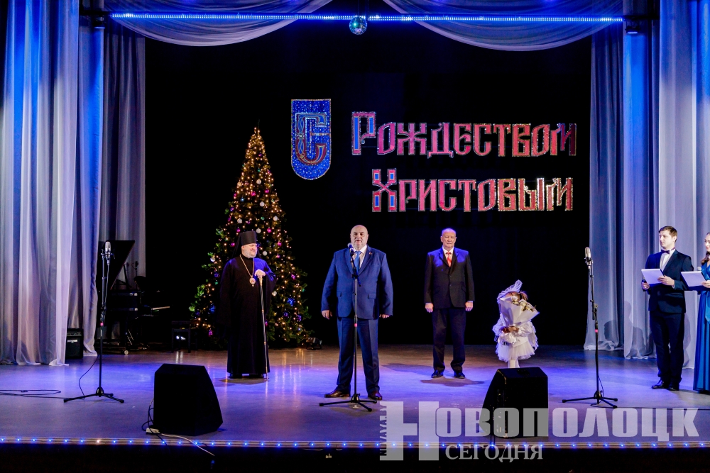 Тем временем на сцене центра зрителей приветствовали ведущие концерта «Зимние созвездия мелодий». С искренними пожеланиями здоровья и процветания в новом году к новополочанам обратился председатель горисполкома Игорь Бурмистров: «Новополоцк – город с душой, а его жители – люди с верой в сердце. Благодарю владыку Игнатия за молитву о нас, за ту работу, которую он проводит по духовному воспитанию детей. Хотелось бы пожелать всем благополучия. Пусть в каждом доме живут любовь и надежда, царят мир и согласие. Пусть всё у нас получается, а Рождественская звезда освещает путь». Правящий архиерей Полоцкой епархии высказал Игорю Павловичу слова признательности, поздравил новополочан с праздником, подчеркнул, что каждый человек должен хранить в своем сердце самое важное – состояние мира. Тогда будет согласие в семье, на работе, в обществе.