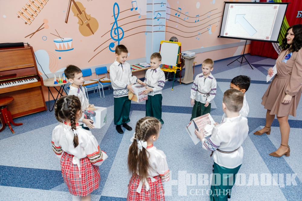 Мальчишки и девчонки, в свою очередь, представили яркие творческие номера. В их исполнении прозвучали песни «Госцейкi», «Ой, рэчанька, рэчанька», «Бабушка-герой». Педагоги д/с №30 подготовили интересные викторины на знания государственных символов. Так, например, малыши узнали, какое древнее животное проживает в Беловежской пуще, почему Беларусь называют Синеокой, из чего раньше шили национальные костюмы, и что означал изображенный на них орнамент.