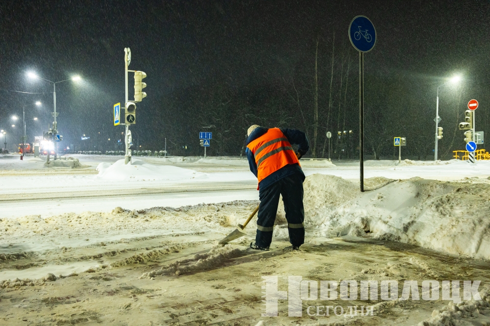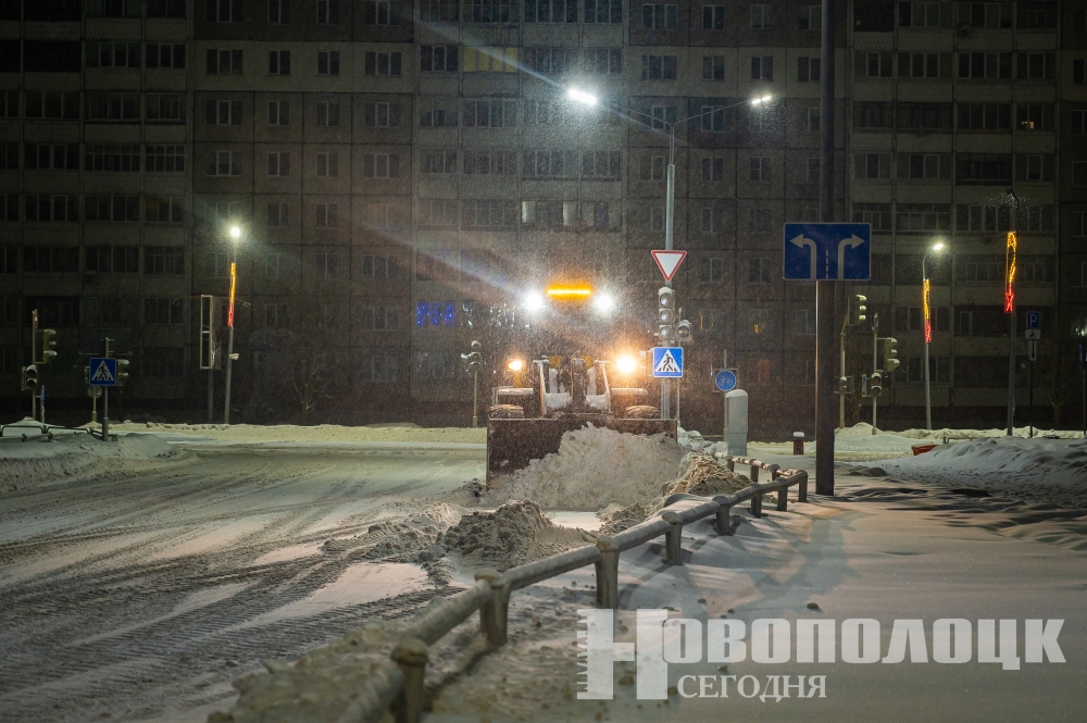 В Новополоцке ведется круглосуточная расчистка города от последствий снежного циклона.