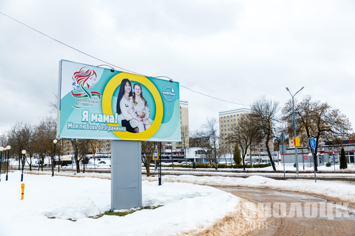 На улицах Новополоцка устанавливают баннеры, посвященные Году белорусской женщины. Кого узнаете?