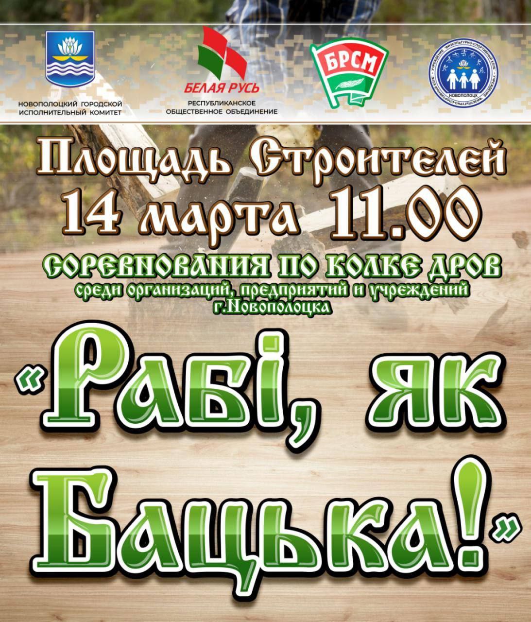 14 марта в 11.00 на площади Строителей г.Новополоцка состоится зрелищное событие – состязания по колке дров среди организаций, предприятий и учреждений города.