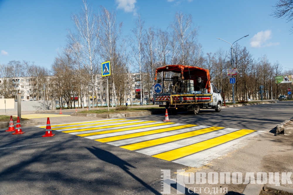 Пятнадцать пешеходных переходов уже засияли яркими красками. На перекрестках Калинина и Юбилейной с улицей Молодежной, а также в районе гостиницы «Беларусь» нанесена зеленая разметка велодорожки.