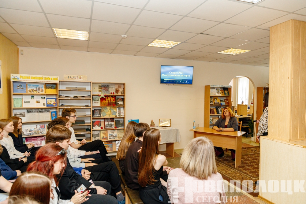 Мероприятие, ведущим которого выступила заведующий библиотекой им. В. Короткевича Наталья Трофимова, прошло в формате открытого диалога. Во время общения с учащимися 10 «А» класса СШ №14 Мария Викторовна рассказала о своем пути: от студентки гуманитарного факультета Полоцкого госуниверситета им. Евфросинии Полоцкой до руководителя крупного учреждения культуры города. Особое внимание акцентировала на социальной ответственности лидера, важности непрерывного образования и умении находить баланс между карьерой и личной жизнью.