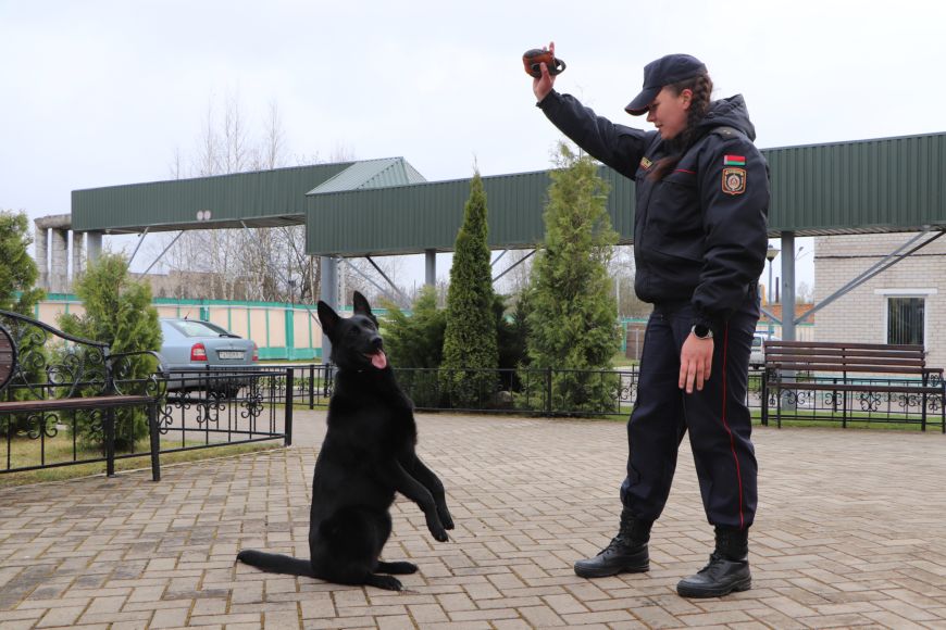 Немало профессий, считавшихся исконно мужскими, сейчас уверенно занимают женщины, не боясь трудностей и проявляя твердость характера. Прекрасный тому пример – милиционер-кинолог группы задержания Новополоцкого отдела Департамента охраны Министерства внутренних дел Мария Дук, которая трудится вместе с боевой и энергичной напарницей – собакой Кирой. Всего за год совместной работы они прикипели друг к другу и достигли полного взаимопонимания. В преддверии Дня образования кинологических подразделений МВД, который отмечается 21 апреля, Мария рассказала корреспонденту БЕЛТА, как она и ее верная соратница привыкали друг к другу, почему их связь сильна даже на расстоянии и какое у хвостатой милиционерши любимое поощрение за выполненный трюк на тренировках.